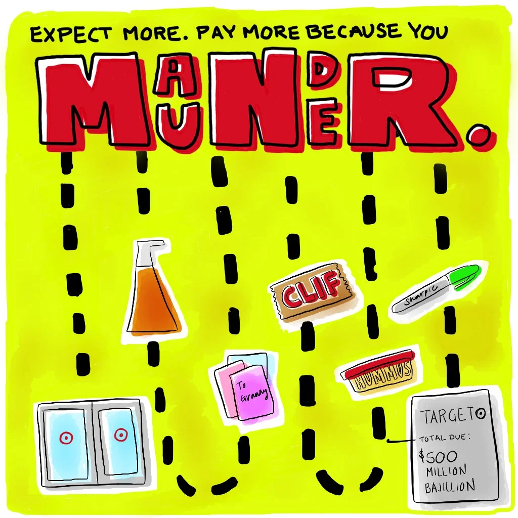 Here's how my Target visits always go: "Just going in for some dish soap, then I'll be right out. Oh crap, grandma's birthday is coming up and I should really get her a card. Now that I think of it, we could really stock up on our Clif bar supply too. And Target always has such good prices on hummus, I should probably grab some... Oooo! Multicolored Sharpies!"